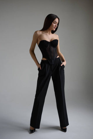 Black Mesh Corset Top With Folds Cups, Removable Straps Crop Top, Lacing Up Custom Corset