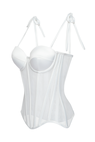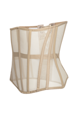 Beige Mesh Corset Top With Folds Cups, Removable Straps Nude Crop Top, Lacing Up Custom Corset