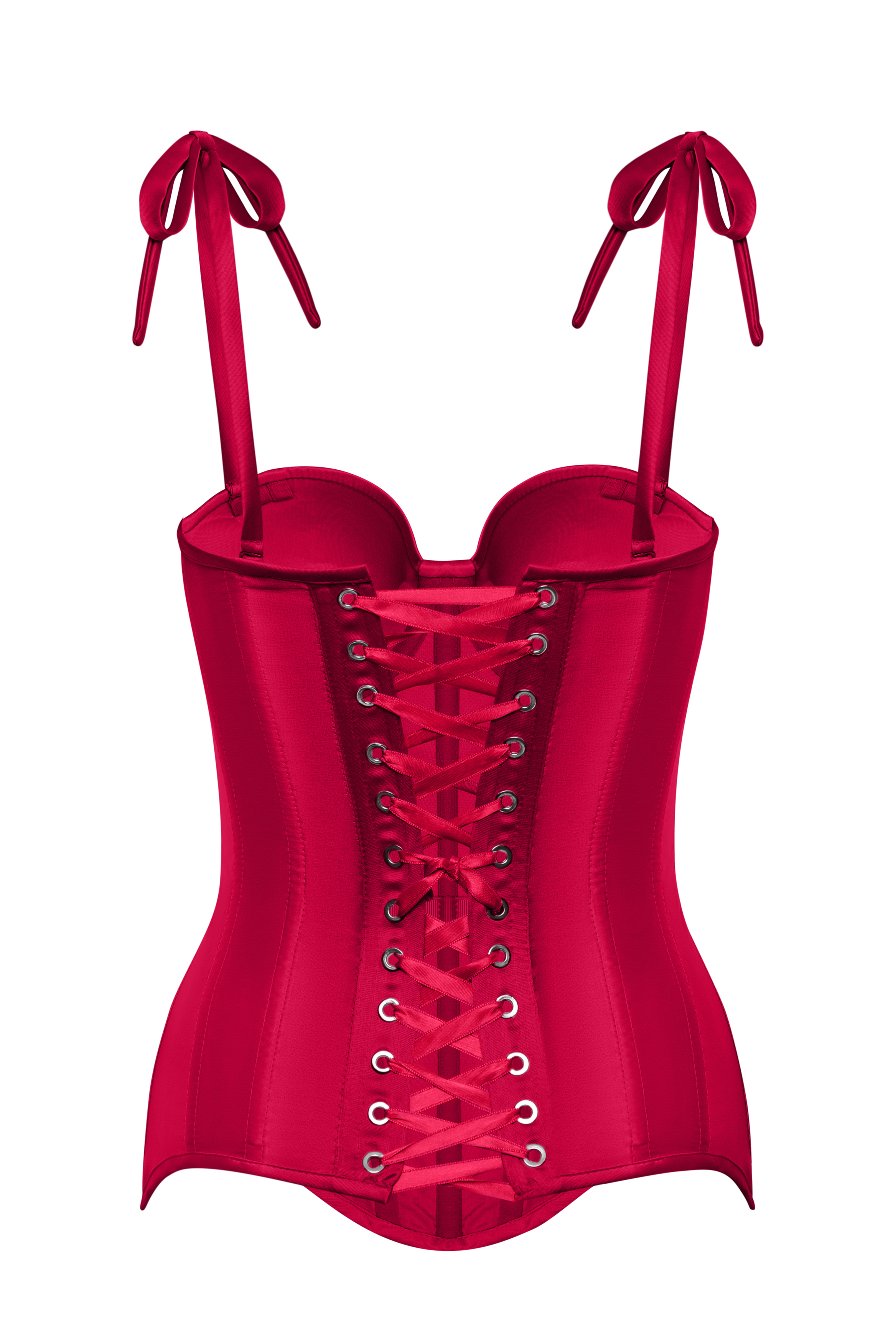 Red Satin Corset Top, Steel Bones Custom Corset Tops, Removable Straps Lacing Up Corset