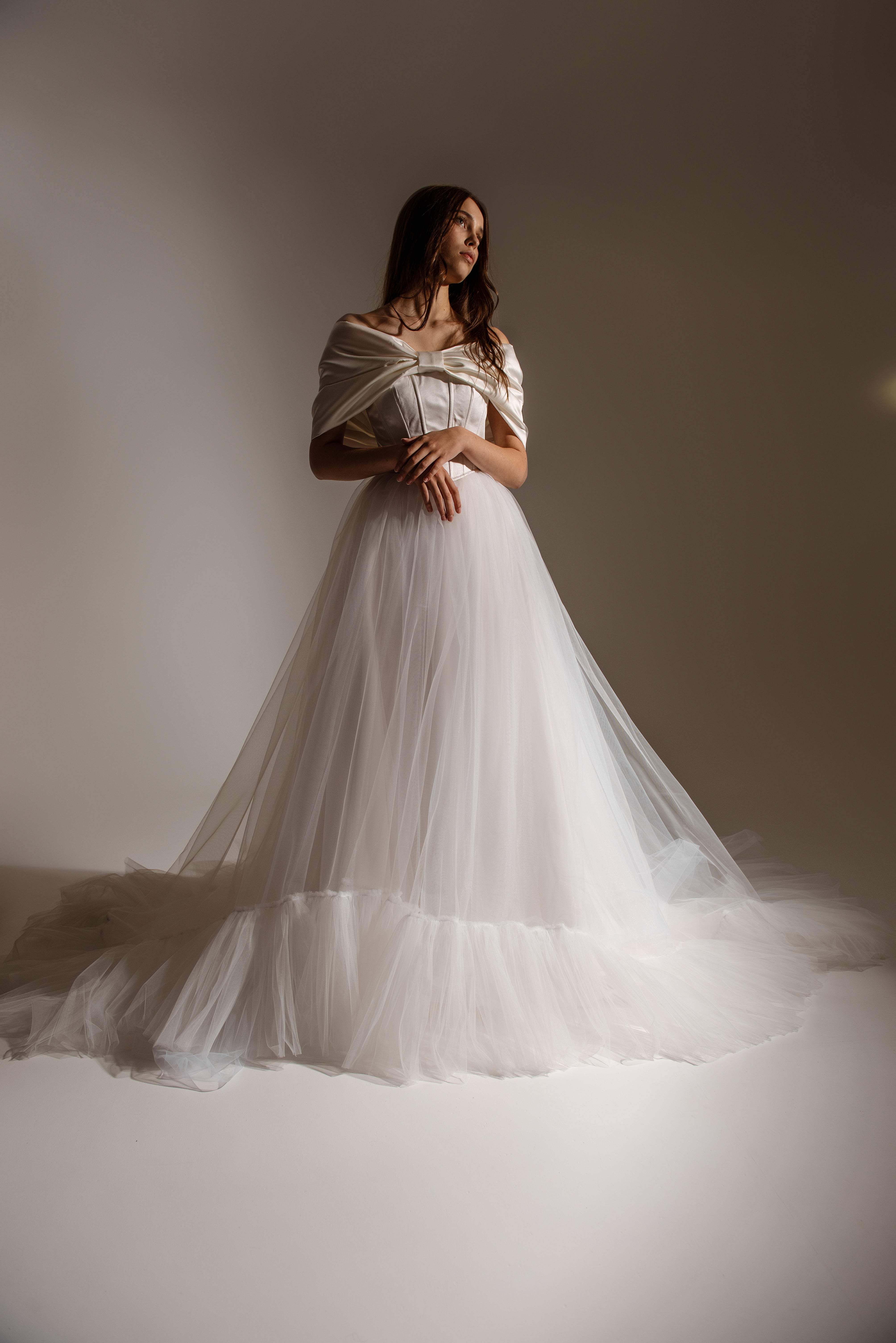 Off The Shoulder Wedding Satin Corset Top With Big Bow, Lacing Back Custom Gown, Bespoke Order Wedding Gown View on Etsy Copy Active
