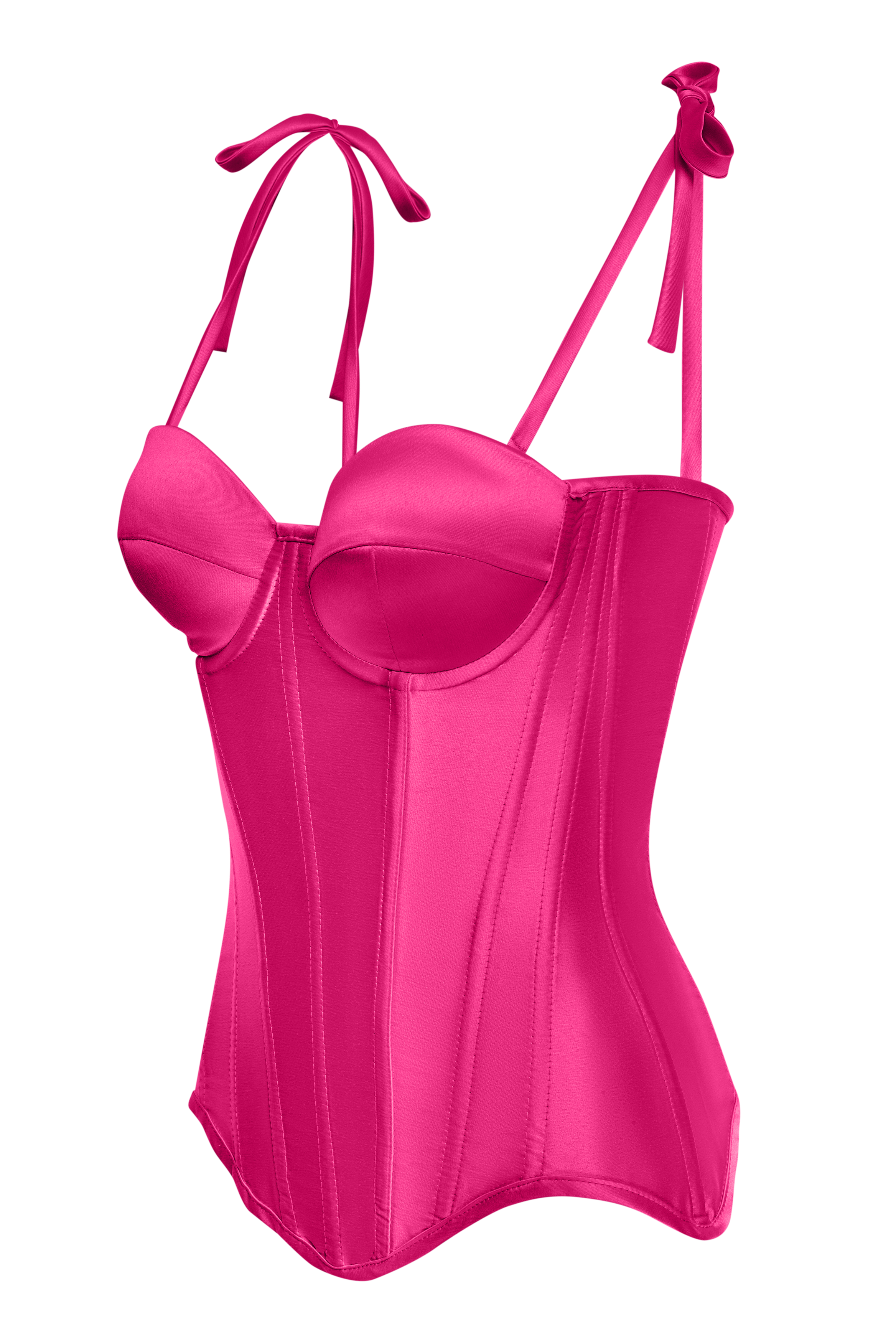 Pink Satin Corset Top, Steel Bones Custom Corset Tops, Removable Straps Lacing Up Corset
