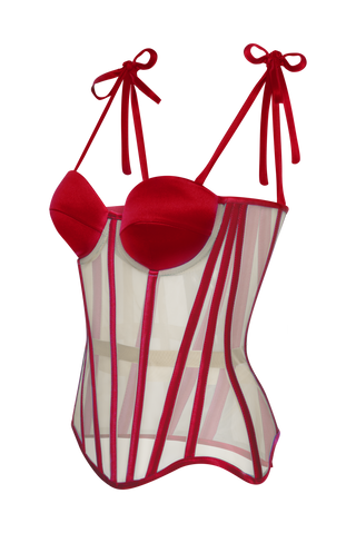 Red Satin Corset Top, Steel Bones Custom Corset Tops, Removable Straps Lacing Up Corset