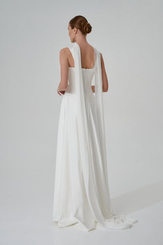 Satin Ivory Wedding Dress, Long Skirt Maxi Bridal Gown, Bride Ensemble, Wedding Outfit