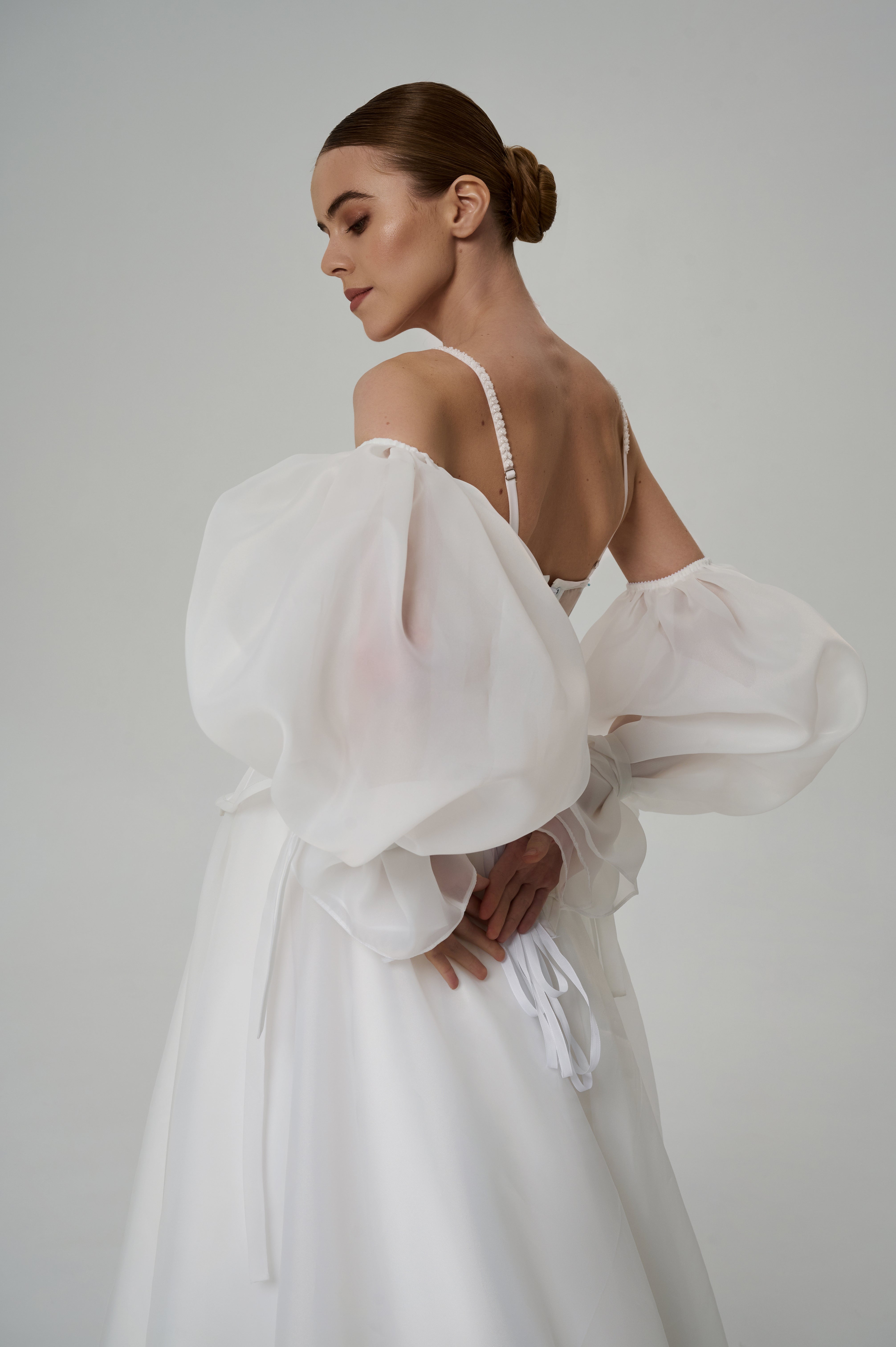 The set can be used as a complete wedding dress or separated to create different looks. The perfect choice for weddings and special occasions.