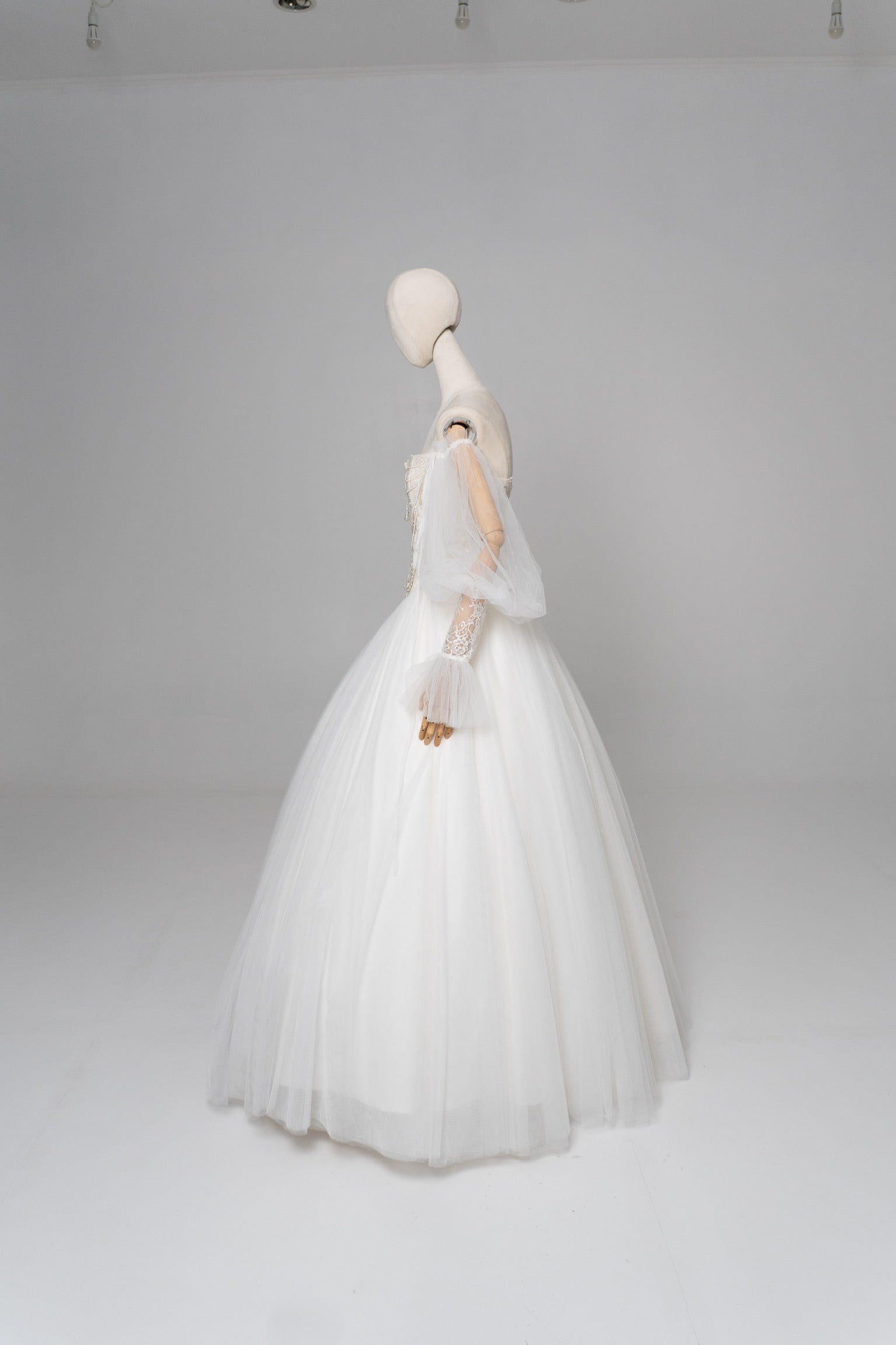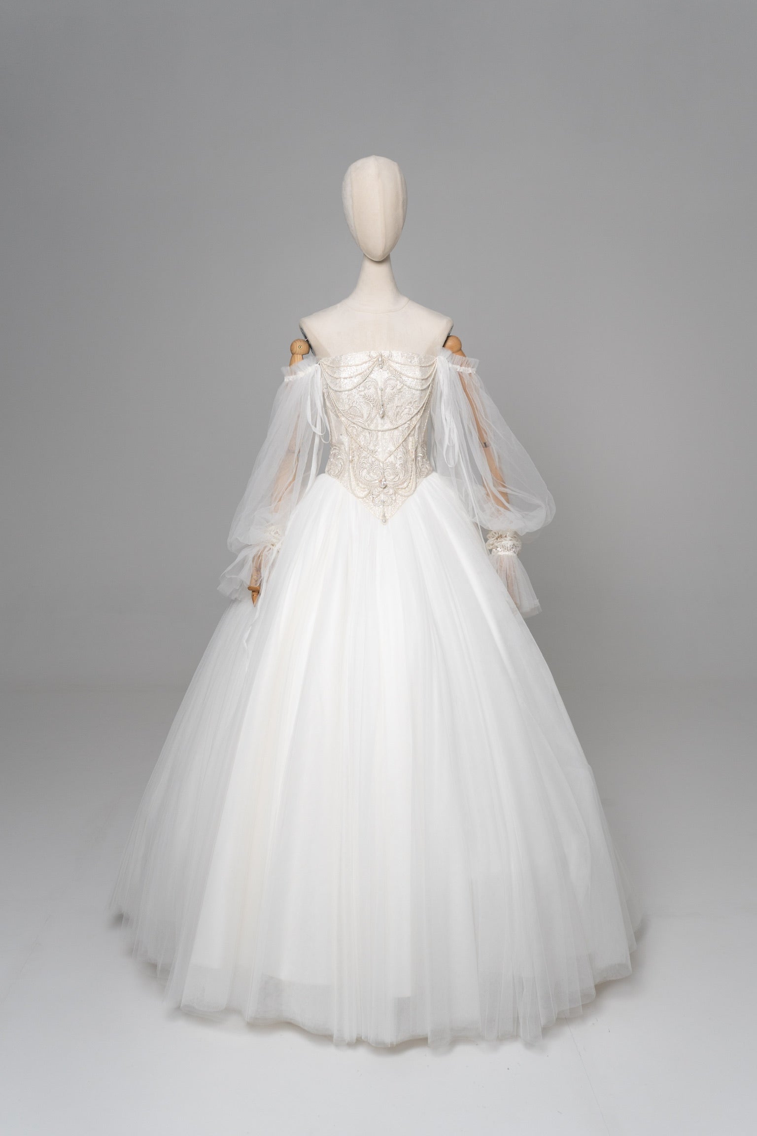 The snow-white wedding skirt, like a cloud, is made of several layers of mesh, and the removable petticoat allows you to control the volume — from a gentle flame to a real hurricane of emotions. This wedding set is for a bride who wants to feel like a fairy-tale heroine, where every detail is part of her unique story.