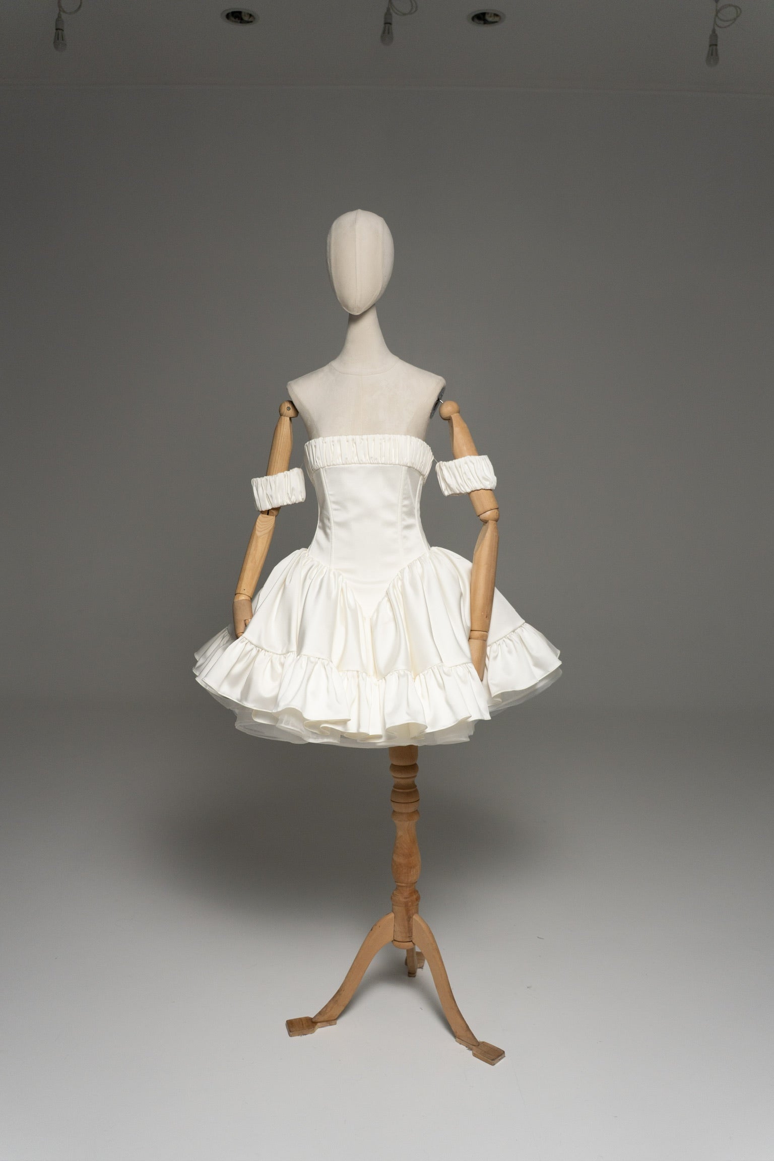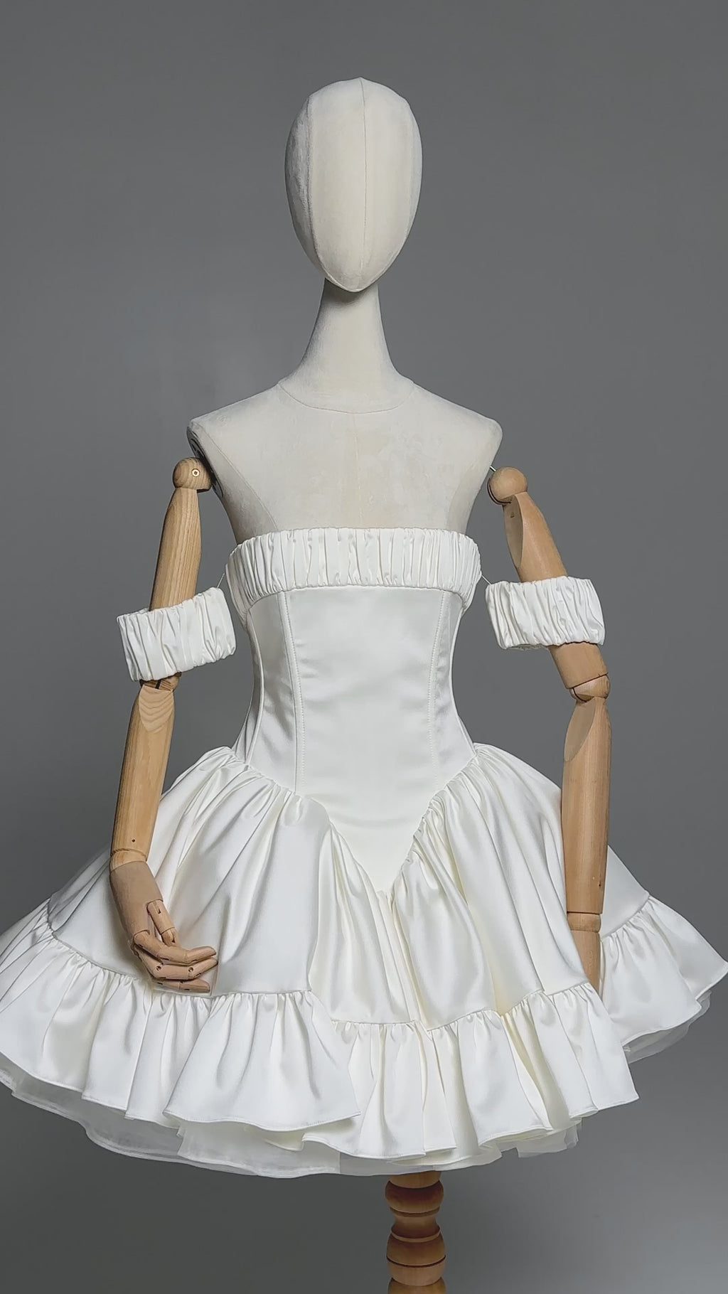 This wedding dress is designed for brides looking for a modern interpretation of a classic silhouette with an emphasis on lightness and playful elegance. The model is based on a corset bodice with a clear fit, which shapes the waist and provides reliable support thanks to vertical bones and lacing on the back.